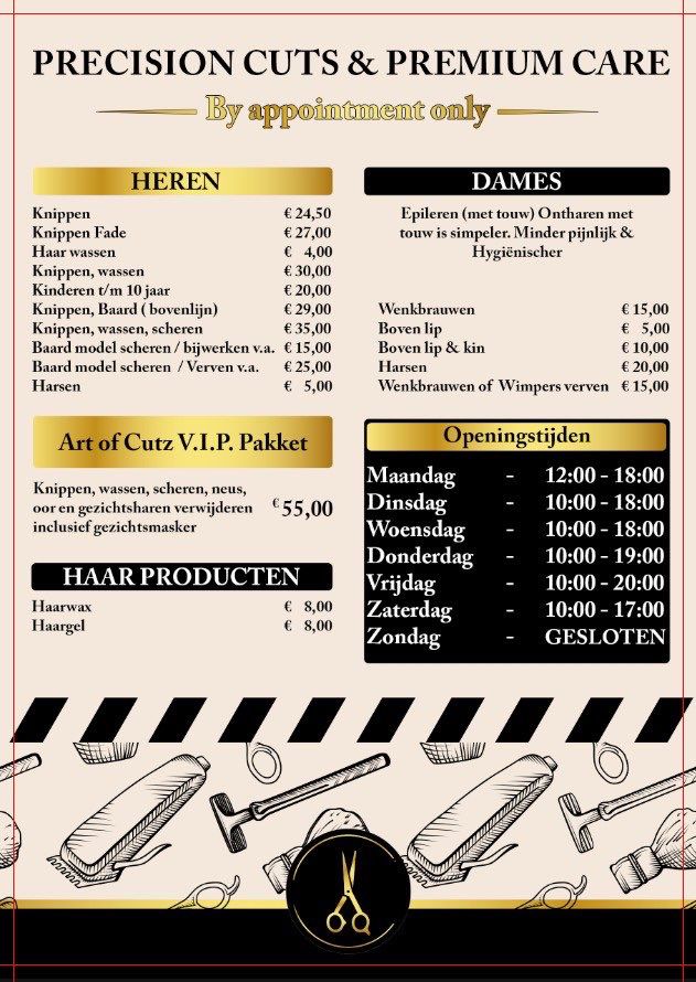 Bij Art of Cutz geloven we dat een goede barber je dag kan maken. In het hart van Nieuwerkerk aan den IJssel creëren we een plek voor mannen van alle leeftijden. Of je nu komt voor een complete transformatie of je zoon meeneemt voor zijn vaste knipbeurt; bij ons sta jij centraal. Hoogwaardige verzorging, een eerlijk advies en altijd een resultaat dat gezien mag worden.